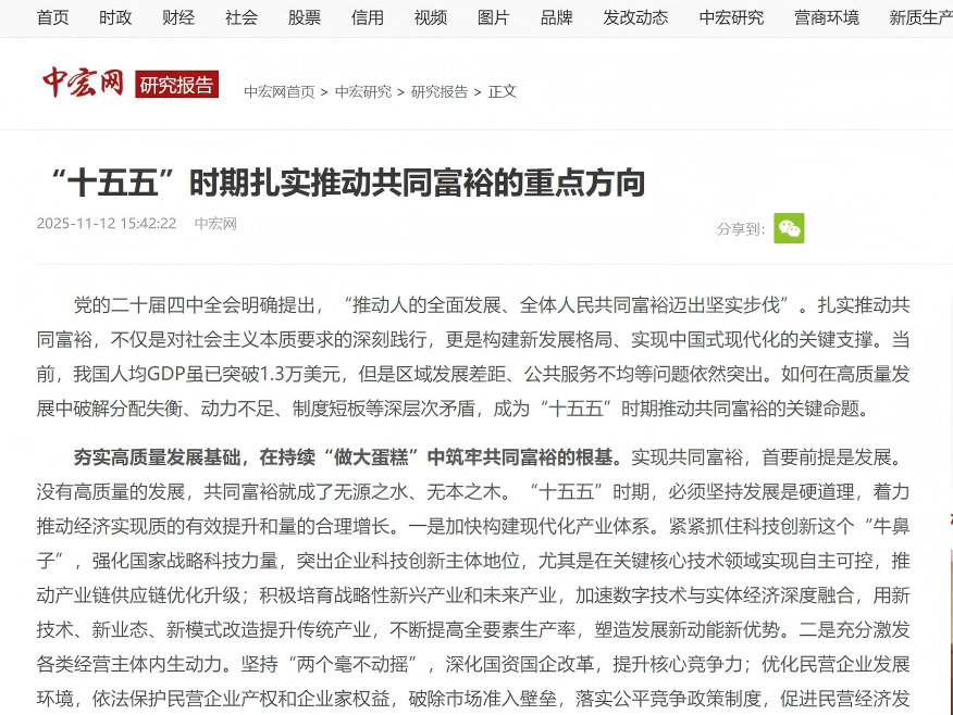 文章系统阐述了“十五五”时期推动共同富裕的四个重点方向:一是夯实高质量发展基础,通过科技创新、激发市场主体活力和扩大内需持续“做大蛋糕”;二是优化初次分配格局,提升劳动报酬比重,拓宽居民增收渠道;三是加大再分配调节力度,通过税收、社保、转移支付等手段促进社会公平;四是引导第三次分配,发展慈善事业,完善激励机制。文章强调,需要统筹发展与共享、效率与公平,循序渐进地推动全体人民共同富裕。(撰稿、供图:徐洋,审核:徐俊杰)