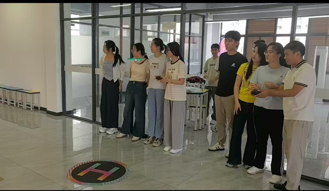 为实现理论与实践的深度融合,极铂飞航为同学们精心设计了“理论授课——模拟飞行——实操体验”三位一体的实践环节。在专业飞手的指导下,同学们分组轮流学习了无人机基础理论,并通过专业模拟器沉浸式体验了无人机操控员的日常工作流程。在实操环节,同学们亲手操控无人机完成了起飞、悬停等基础动作,零距离感受到了无人机技术的独特魅力与精准操控的挑战。