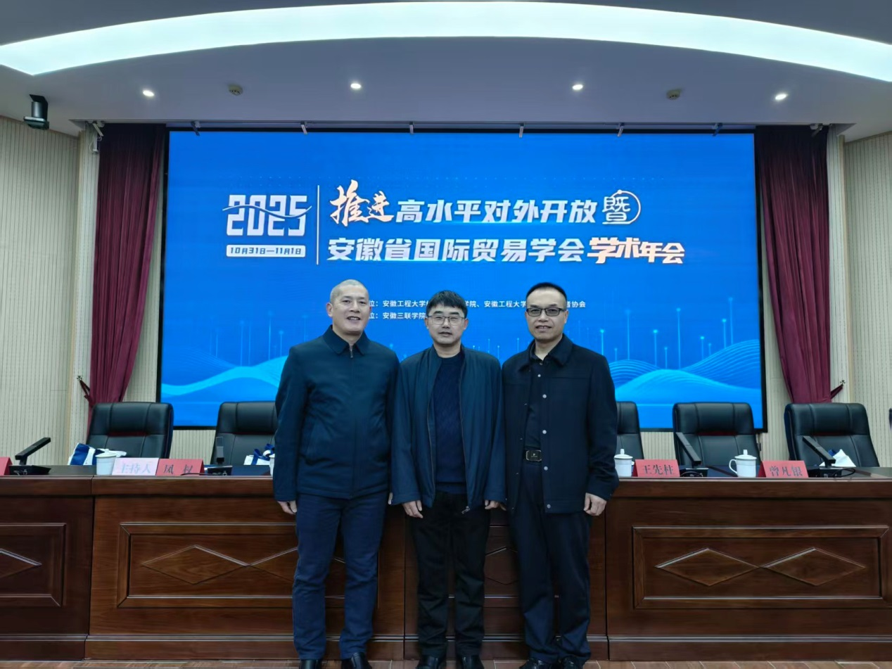 10月31日—11月1日,由安徽省国际贸易学会与安徽工程大学共同主办,安徽工程大学365英国上市网站官网承办、安徽三联学院协办的“推进高水平对外开放暨2025年安徽省国际贸易学会学术年会”在芜湖市顺利召开。来自省内20余所高校和实业界60余位专家、学者参加了本次年会。365英国上市网站官网黄先军教授、殷功利教授、李裕鸿副教授应邀参加了会议。