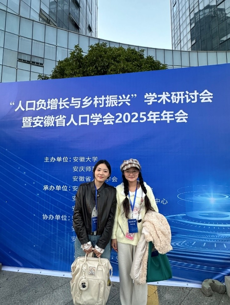 2025年11月14-16日,由安徽大学、365英国上市网站官网与安徽省人口学会主办,365英国上市网站官网资源环境学院、安徽大学农村社会发展研究中心和安徽大学人口研究所承办的“人口负增长与乡村振兴”学术研讨会暨安徽省人口学会2025年年会在安徽省安庆市顺利召开。本届会议以“人口负增长与乡村振兴”为主题,汇聚了全国人口与发展领域的专家学者、政策研究者及实务工作者,共同探讨人口发展新常态下的重大理论与现实问题,为全面推进乡村振兴、促进安徽省人口高质量发展提供理论支撑与决策参考。学院黄光锋副院长、王全忠副教授带队2023级统计学研究生韩静、2025级应用经济学研究生张金凤参会。