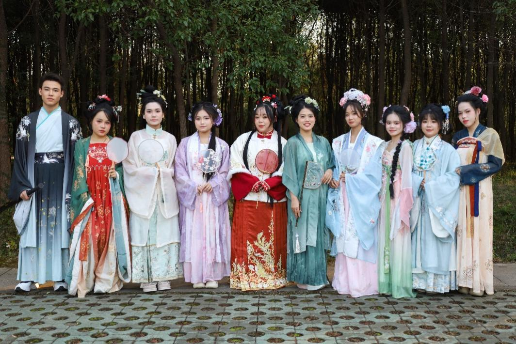 经过四十分钟的妆造准备,来自哈萨克斯坦的北明轩身着宋制灰蓝渐变外袍、手握黑色长剑,静立在校园竹林中,身上的宋韵服饰与摇曳竹影相映,让拍摄画面充满了中式韵味。“这真是一次特别的文化体验。”北明轩笑着感慨,随后拨通视频,将这份新奇的校园体验分享给远方的亲友。